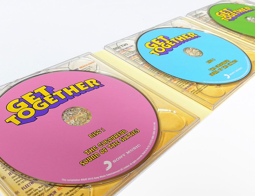 Three disc digipak design for a 1960s compilation through Sony Music. The brief was to avoid tacky clichés and present the artwork in a style that may had existed at the time, citing various artists from the decade.