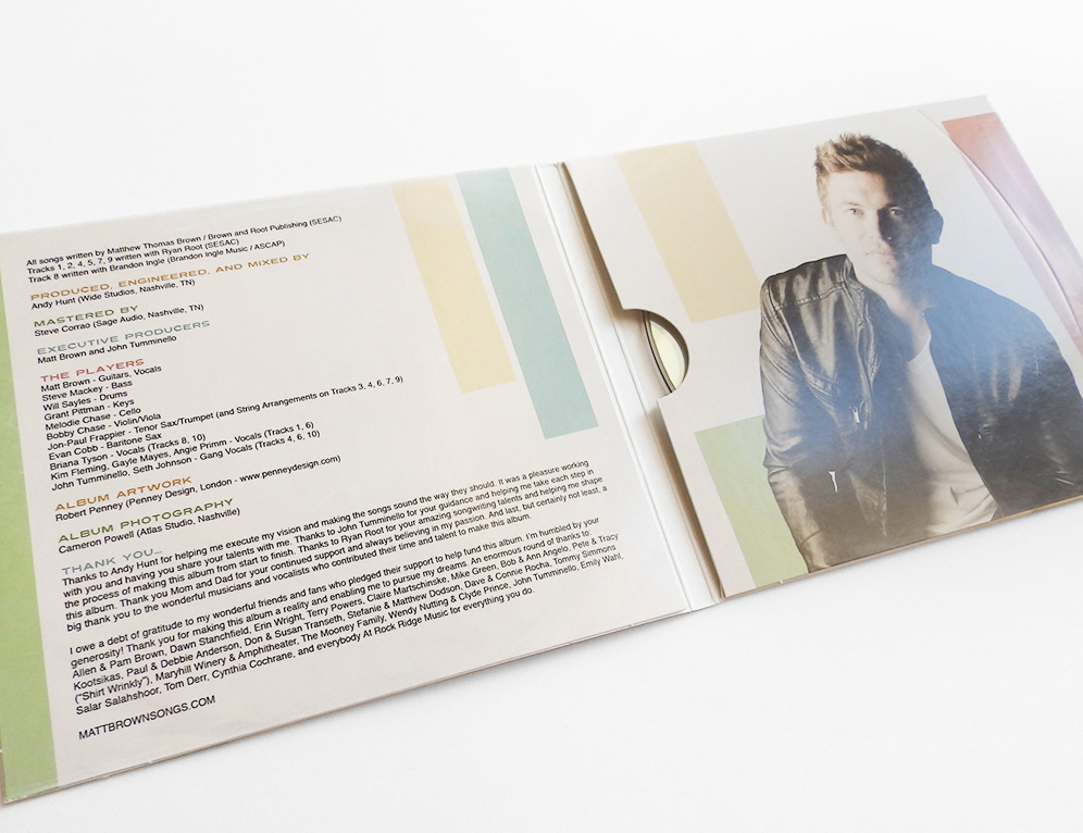 CD artwork for Nashville-based soul artist Matt Brown. Brown has a voice seasoned by influences such as Ray Charles & Bill Withers and guitar styling steeped in the tradition of Eric Clapton & Stevie Ray Vaughn. Also includes T-Shirt design.