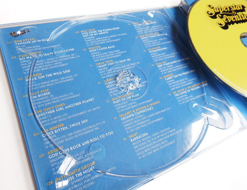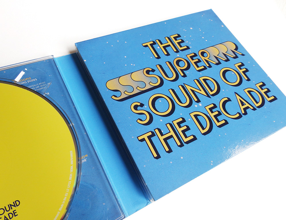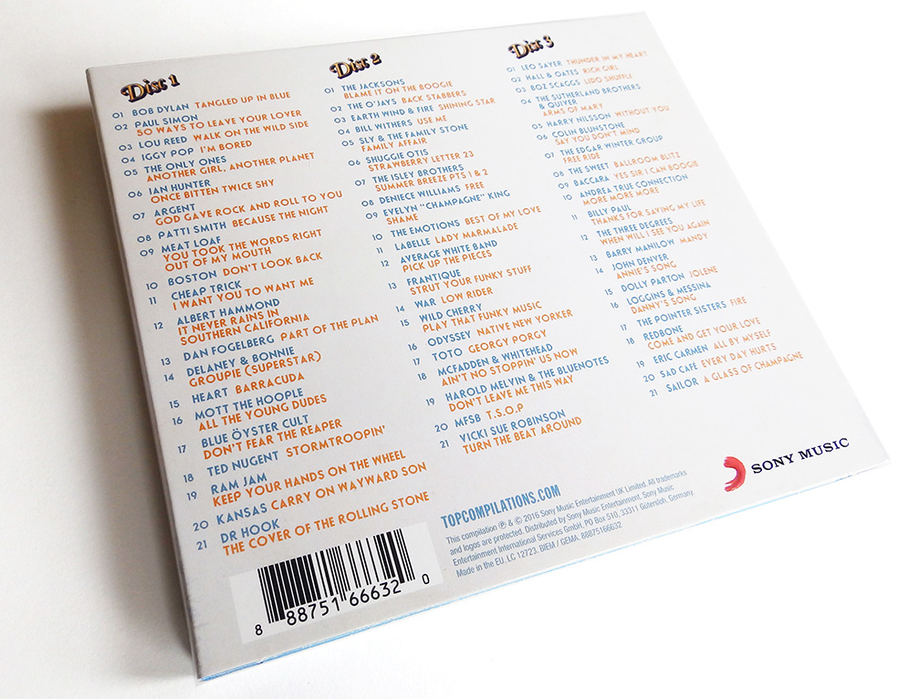 Three disc digipak design for a 1970s compilation through Sony Music. The design avoids tacky clichés (platform shoes, disco balls etc.) and presents the artwork in a style that may have existed at the time.